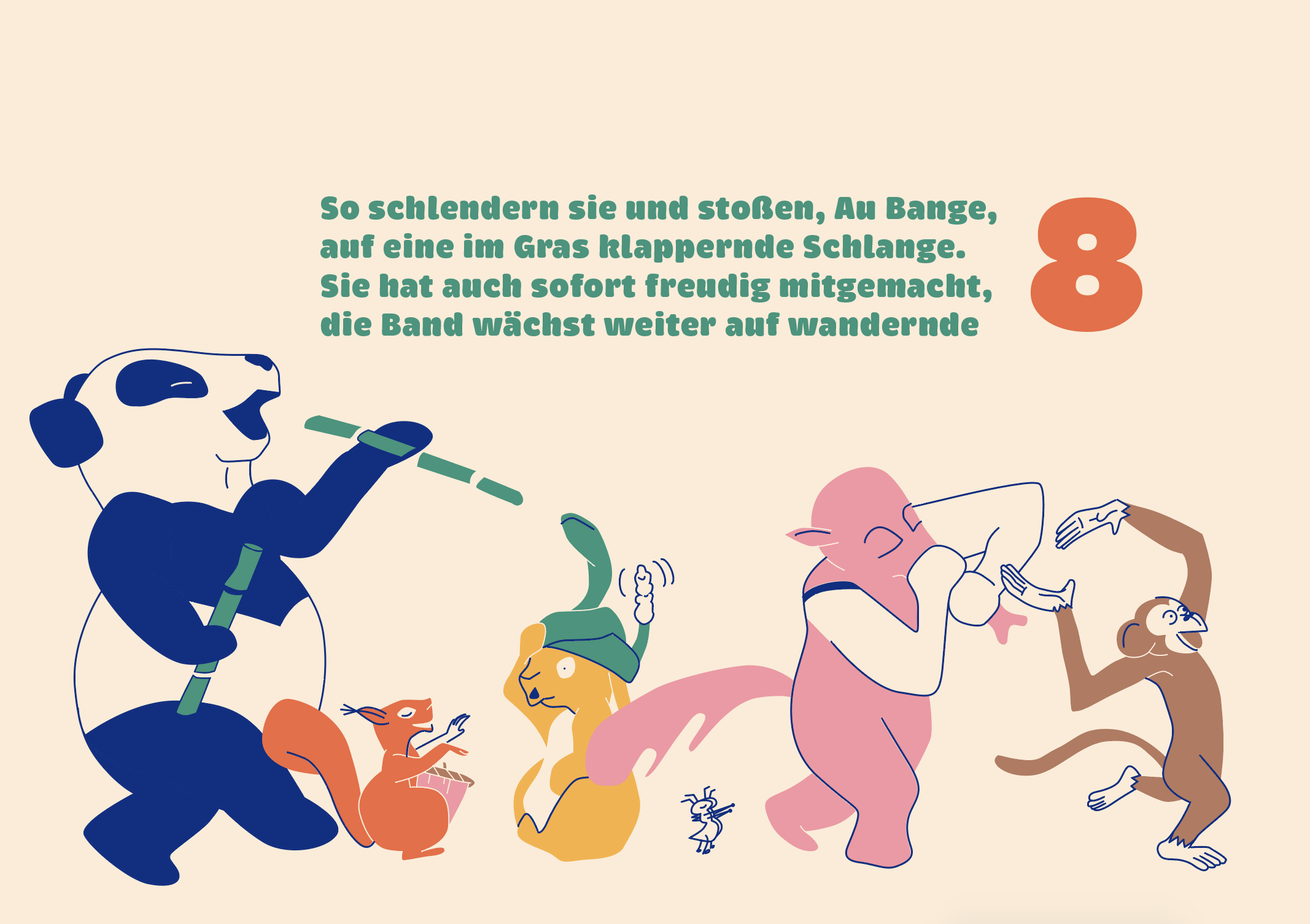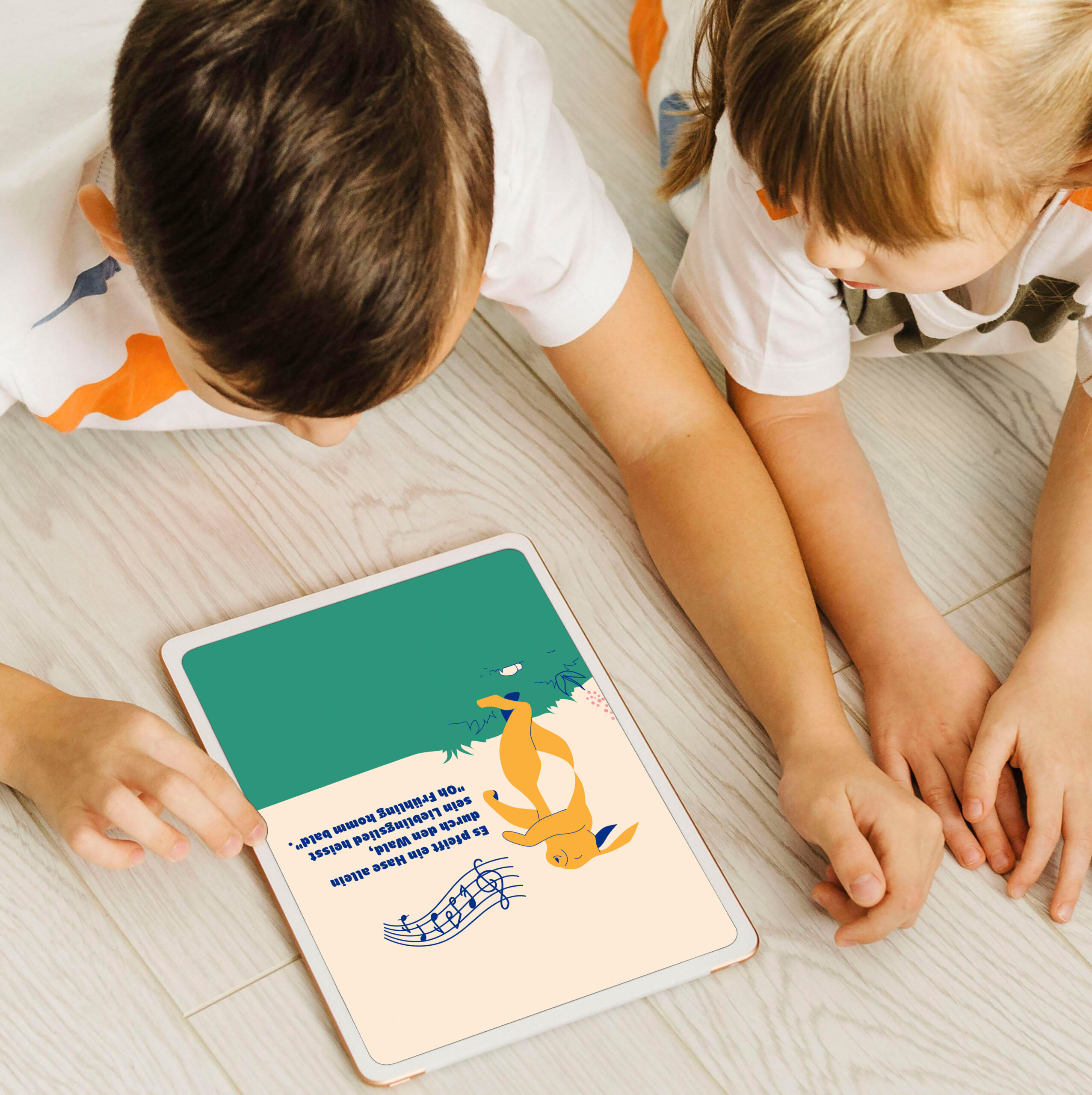 Das ursprüngliche Buch wurde zeichnerisch und illustrativ umgesetzt. Für das Redesign habe ich die Geschichte neu übersetzt und in ein modernes, grafisches Gestaltungssystem überführt. Klare Formen, reduzierte Farbwelten und ein ruhiger Rhythmus ersetzen die illustrative Erzählweise.
