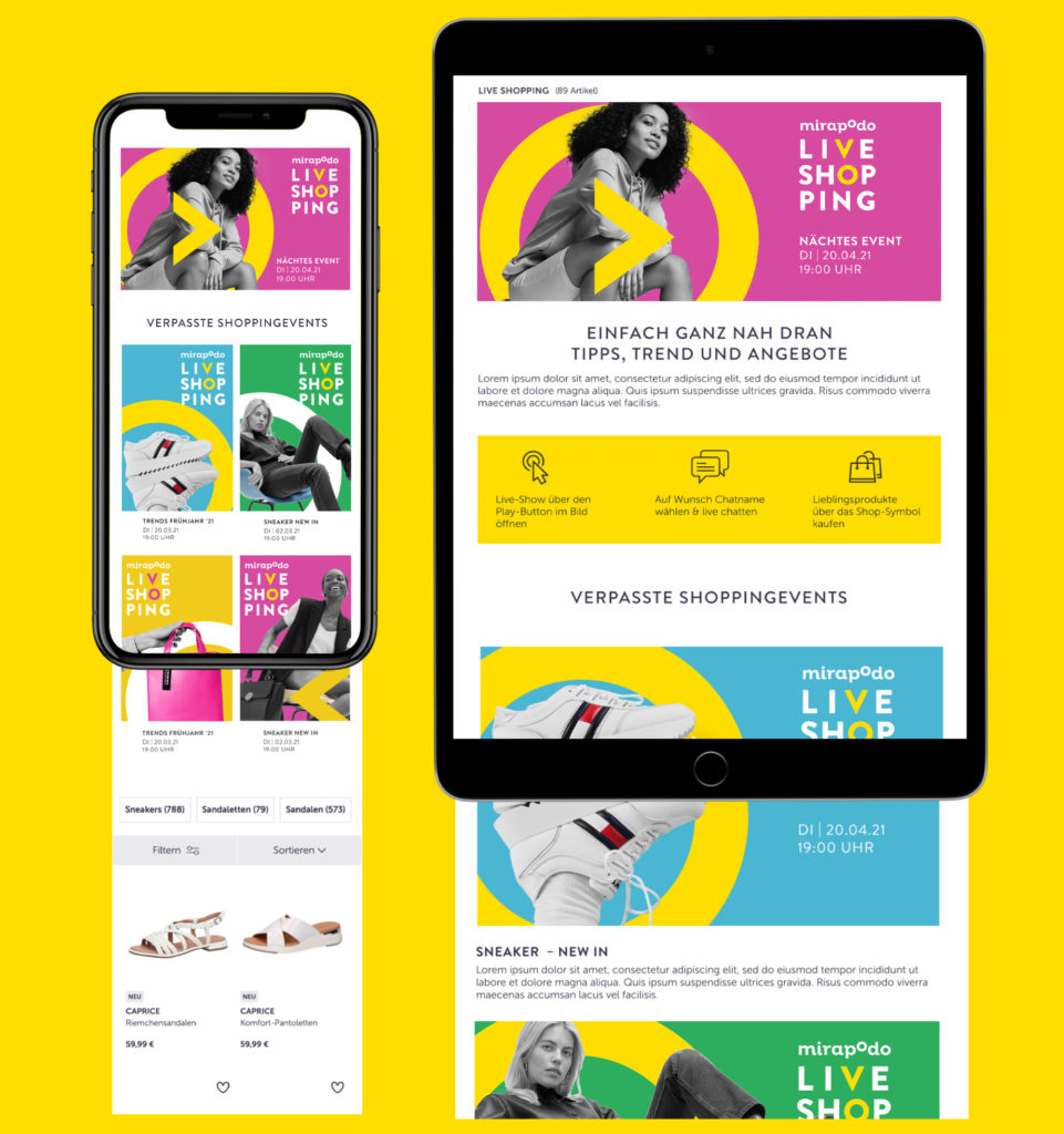 Live Video Shopping ist mit 90% mobilem Traffic, vor allem ein Smartphone-Phänomen und verhilft der mirapodo App zu einem echten Mehrwert. Kund*innen wollen exklusive Vorteile, Vorstellungen von neuen Kollektionen nicht verpassen und erteilen Opt-Ins für App-Push Notifications.