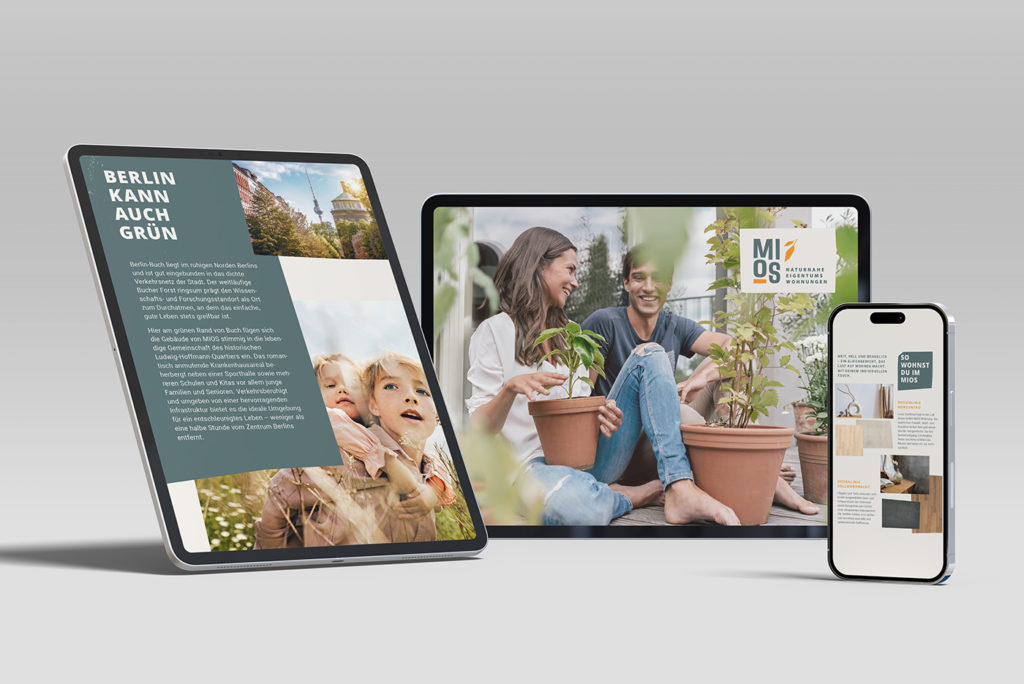 Berlin, nur grün. Die hochwertigen Eigentumswohnungen von MIOS kombinieren im Nordosten Berlins naturnahes Wohnen mit den vielen Vorzügen der Großstadt. Eingebunden in das verkehrsberuhigte Ludwig Hoffmann Quartier verspricht das hochwertig ausgestattete Ensemble aus fünf Häusern Ruhe und Entspannung in einer familienfreundlichen Umgebung.