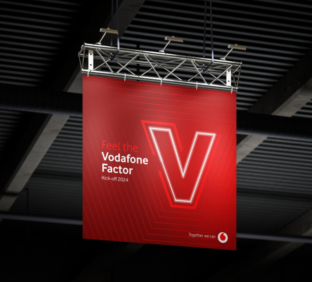 Mit einem 3-tägigen Event wurde bei Vodafone das Kick-off 2024 mit allen Sinnen eingeleitet. Über Werbemittel und Leitsysteme, digitale Präsentationen und kreative Photopoints bis hin zur unterhaltsamen Bühnenshow – das Branding sprach eine deutliche Sprache. Feel the Vodafone Factor.